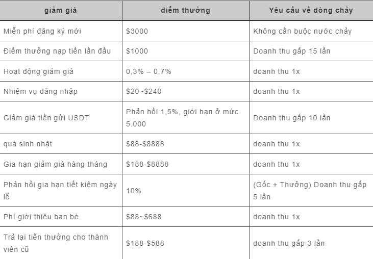 Tiền thưởng gửi tiền lần đầu: 1000 cho tiền thưởng 1000 / doanh thu 15 lần